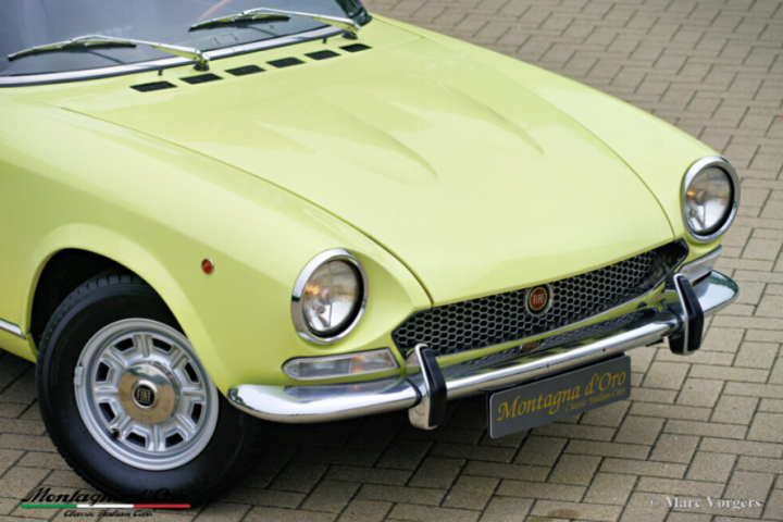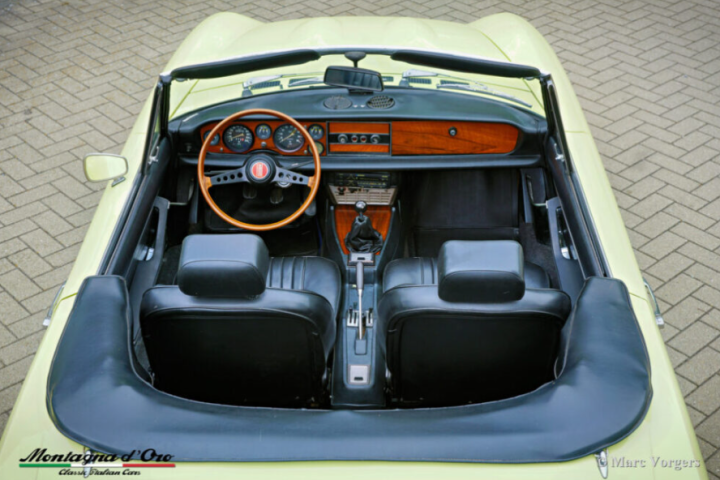 Dit was een nieuw inzicht overgenomen van rally- en raceauto’s dat toen in de mode raakte. Deze prachtige Fiat 124 Sport Spider is in deze kleuren beeldschoon en de fraaie originele lichtmetalen velgen maken het plaatje helemaal af! Dit fraaie exemplaar zal de trotse nieuwe eigenaar of eigenares veel rijplezier brengen!