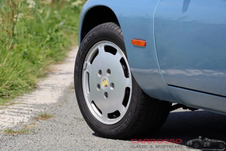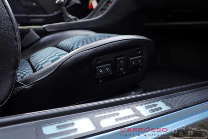 All body parts fit well together, the car is rust free and the composition is superb: a light blue colour ‘Hellblau Metallic’, original alloy wheels and a Pasha interior. This distinctive checkered interior is done with a hint of blue and is quite unique. The dash is free of cracks in the dashboard. The engine compartment is dry and the car drives, shifts and brakes very well. Recent upgrades include the clutch, pressure plate, thrust bearing and battery. Most 928s are fitted with an automatic transmission but this example is equipped with the coveted and faster manual ‘’Dogleg‘’ transmission. At the time, Porsche advertised the phrase ‘from 0 to 100 km/h and back to 0 in just 10 sec’ to indicate that both acceleration and braking power were above average. Porsche also described the 928 as three cars in one: a sports car with good performance, a comfortable, luxurious coupé and a purposeful, practical vehicle suitable for long distances and almost no maintenance. These words are nothing too much to say: in addition to excellent handling, the car is richly equipped with four seats, air conditioning, cruise control and electric windows and mirrors, among others. Included with the car are a 1979 manual, maintenance bills and a Car-Pass validating its low mileage of 105,589 km. This example in the beautiful blue metallic colour with beautiful interior is well maintained and an increasingly sought-after youngtimer and thus an addition to any collection.