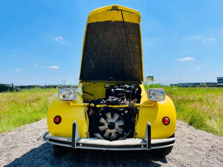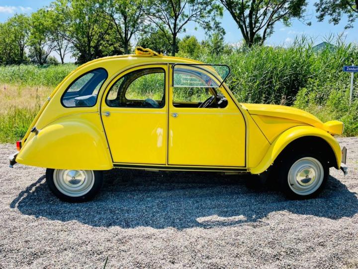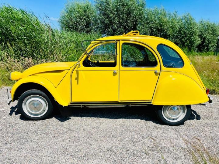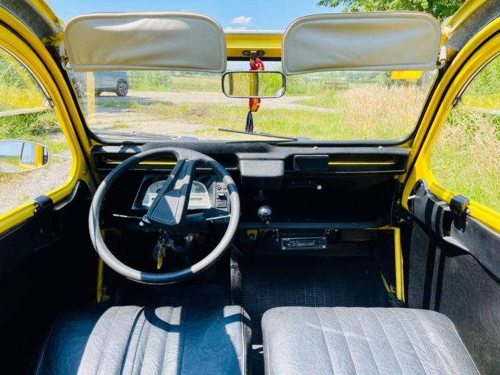 Deze 2cv6 CT in de geweldige frisse kleur Jaune mimosa vonden we onlangs in de buurt van Malaga en haalden we naar Nederland. Het Spaanse klimaat heeft hem erg goed gedaan, de onderzijde verkeerd nog in uitstekende originele staat. De carrosserie is in het verleden eens opnieuw gespoten en ziet er algemeen netjes uit.