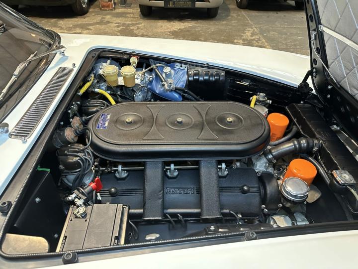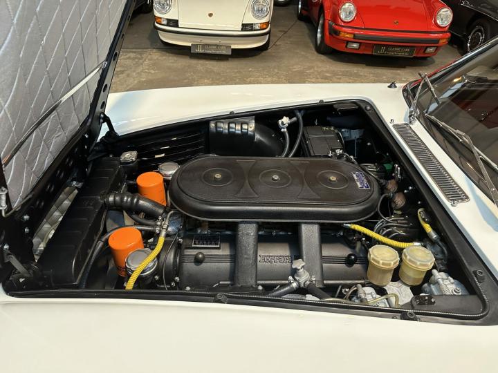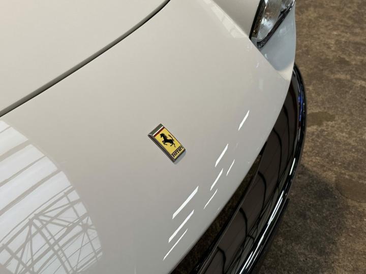 Elle est restaurée en 2013, époque à laquelle elle retrouve sa configuration d’origine Bianco 18934 Italver avec un intérieur pelle rossa comme le stipule le certificat d’authenticité Ferrari.