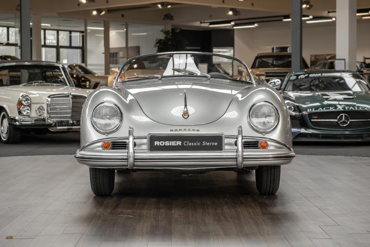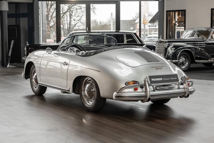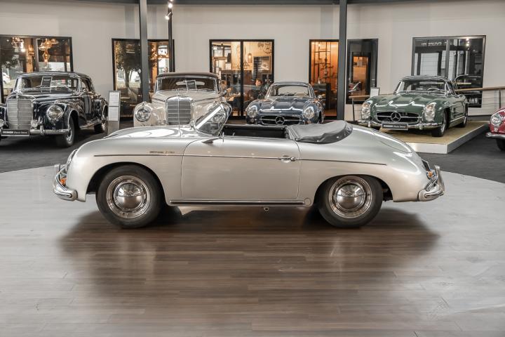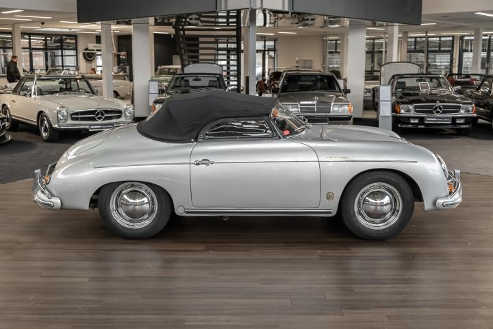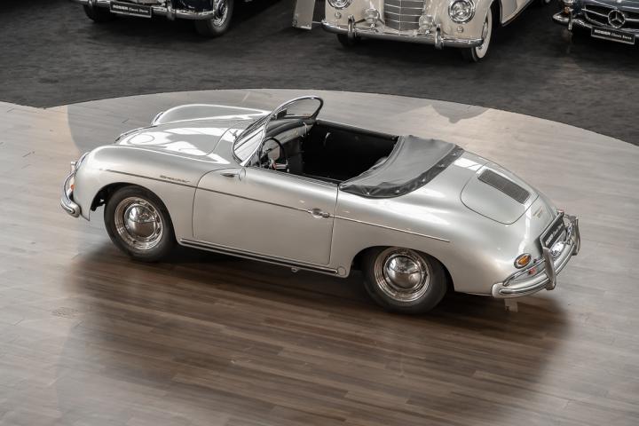 We are delighted to be able to offer you this exceptional Speedster from 1958. This Porsche icon in timeless silver metallic was intended for the American market, for which the purist sports car from Zuffenhausen was a highly coveted object. It was Hollywood stars such as James Dean and Steve McQueen who brought the German sports car manufacturer into the mouths of many wealthy Americans, quickly making it a coveted cult object.
