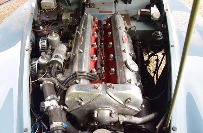 This particular example is completely restored at the end of the nineties, and still looks in great condition. Paint quality is really good, the interior is beautifully trimmed in contrasting dark blue hide, and the mohair hood fits perfectly. The matching nrs engine has the C-Type head from new, and offers great performance. The original Moss 4-speed gearbox is still fitted, and shifts well and unusually easy. For additional driving comfort, the XK140 is fitted with an EZ electrical power steering. The car sits on beautiful wire wheels with stainless steel spokes, and fitted with period correct Michelin Radial X tyres.