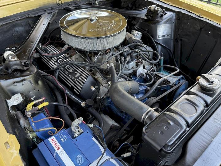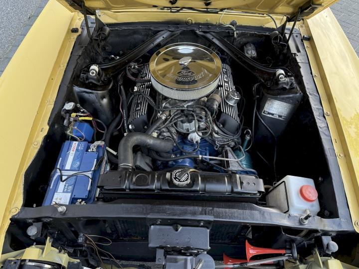 Loaded with a strong running 351w engine with aluminum heads , mild came ,aluminum intake manifold strong powerful engine the double exhausted gives it a nice deep rumble the fmx automatic shifts smooth in all gears loaded with disc brakes ,power steering ,deluxe mach one interior the mustang has be repainted 17 years ago in Europe and looks still very nice after a day polish its super shiny with a deep color, floors are original and clean this mustang has already an european license.