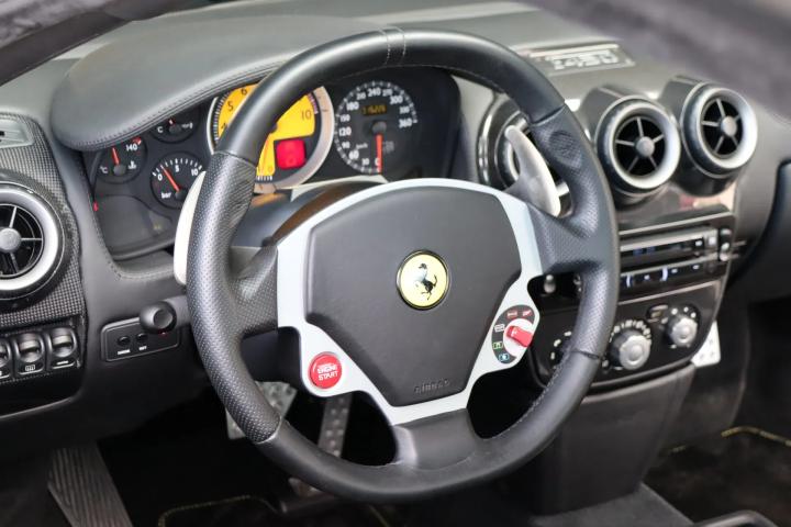 The interior is in excellent condition and even smells like new! It is finished in “Nero Black” with leather upholstery. Although the F 430 is a fast sports car, the interior provides the occupants with more than enough comfort. Think air conditioning and an alarm system. The interior also features attractive and valuable options: a radio/CD player with a Bluetooth system (new price £2,387), electrically adjustable seats (new price £3,601) and rear parking sensors. There is also an automatic fold-out navigation screen and a Bose surround sound system. The interior has a sporty finish with carbon trim parts on the dashboard and door sills. The automatic 6-speed gearbox can be operated using paddles on the steering wheel. The steering wheel also features a striking start button and a rotary knob that can be used to adjust the car's dynamics (manettino), something that Ferrari first introduced on the F430.