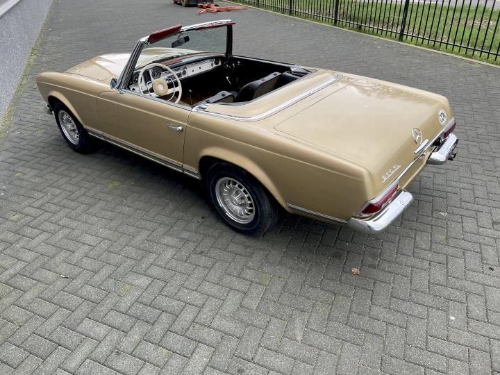 Leuke opknapper deze 230SL handgeschakeld en voorzien van Hardtop en softtop, na jarenlang stilgestaan te hebben in opslag hebben we deze auto weer tot leven gebracht, auto loopt en rijdt nu nadat het benzine systeem verbetert is en een nieuwe benzinetank met pomp en slangen vernieuwd zijn er voor ruwweg Euro 1.250 kosten aan gemaakt.