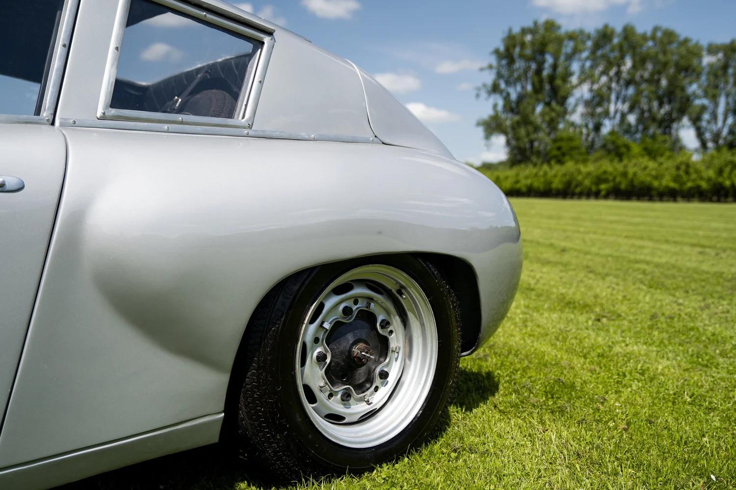 In 1963 Aldo Borghi received a Porsche 356 from a customer for restoration. This Porsche 356 was produced in 1953 as a 1954 model year with a 1.500 ccm type 546 engine producing 55 PS. After suffered a fire the car was completely destroyed. The restoration was practically impossible, but the mechanics and its running gear were still of interest to the Italo-Argentinean coachbuilder.