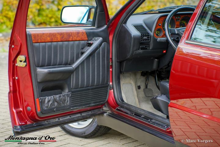 De Lancia Thema is een prachtige vierdeurs sportsedan, uitgerust met een 215 pk sterke 3-liter V8-motor met 32 kleppen (8.32) en een luxe volledig lederen interieur van Poltrona Frau. Van 1986 tot 1992 werden er slechts 3.971 exemplaren gebouwd, waardoor de Lancia Thema 8.32 een zeldzame verzamelauto is.
