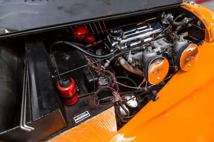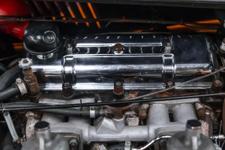 #1-180 lbs-5%,#2-170 lbs-5%,#3-165 lbs-5%,#4-170 lbs-10% .The engine is very strong. Documents show us that the car was sent to the Morgan Motor Company in 1969 to be fitted with a TR engine and all proper work needed to make it a viable motor train. The current status of mechanical is that the driveline is very tight ,strong, and responsive. The car has had regular servicing through the years.