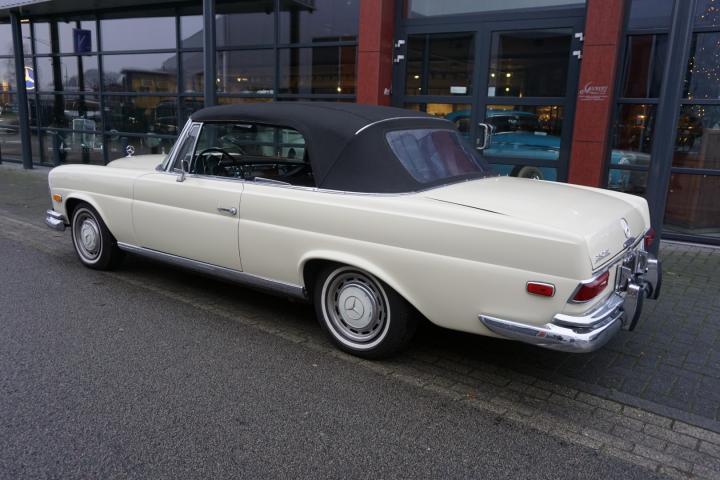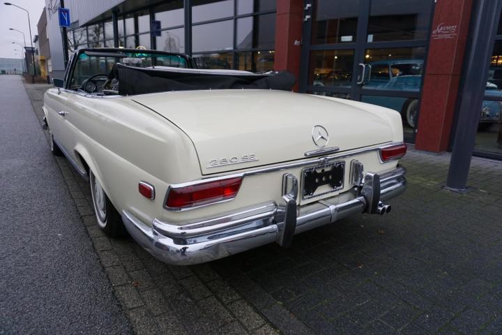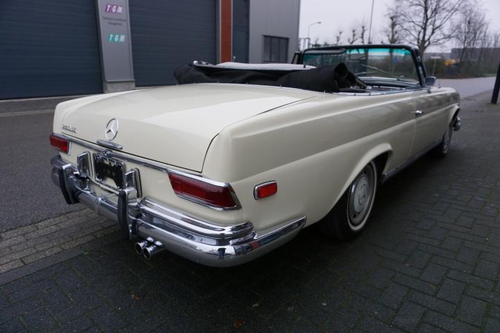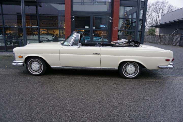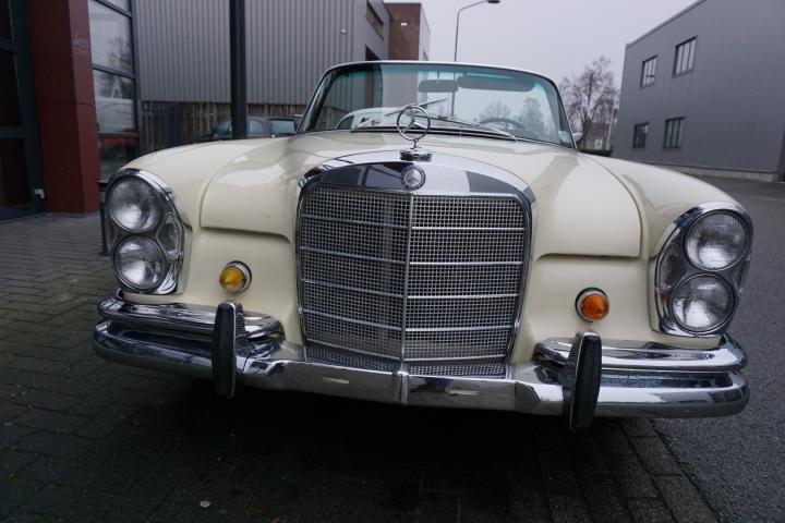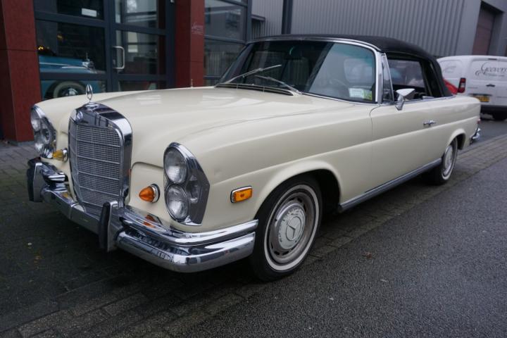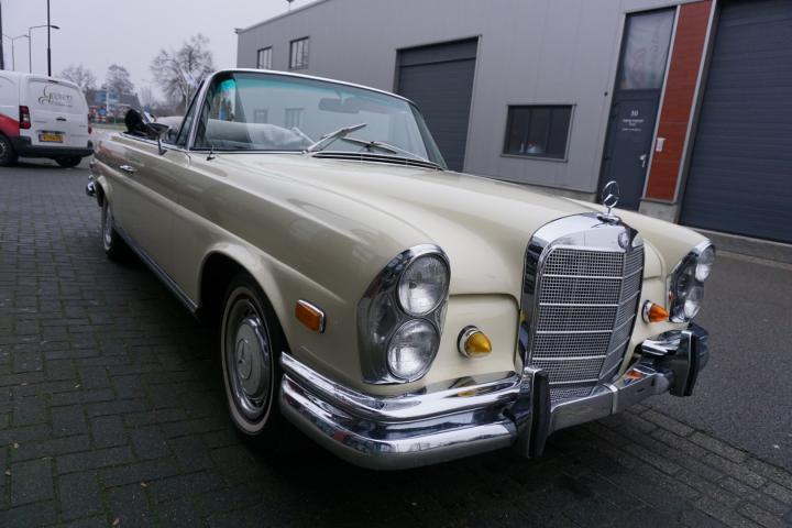 Best een mooie auto deze 280SE hoge grille Cabriolet, de prijs/kwaliteit verhouding in in orde, loopt en rijdt goed en zal technisch weinig tot geen werk met zich meebrengen, in het verleden heeft deze 280SE een nieuw onderblok af fabriek gekregen, de juiste 130980 motor, qua lakwerk goed, mooi strak en geen deuken of krassen, het chroomwerk is netjes met de juiste pasvorm, de Amerikaanse bumper-rozetten voor en achter is persoonlijk, leder interieur is nog volledig het eerste originele af fabriek, de body is origineel, droog en goed, auto heeft geen laswerk gehad in het verleden, kortom een leuke auto met een uitdagende prijs voor een 280SE W111025 Cabriolet af fabriek.