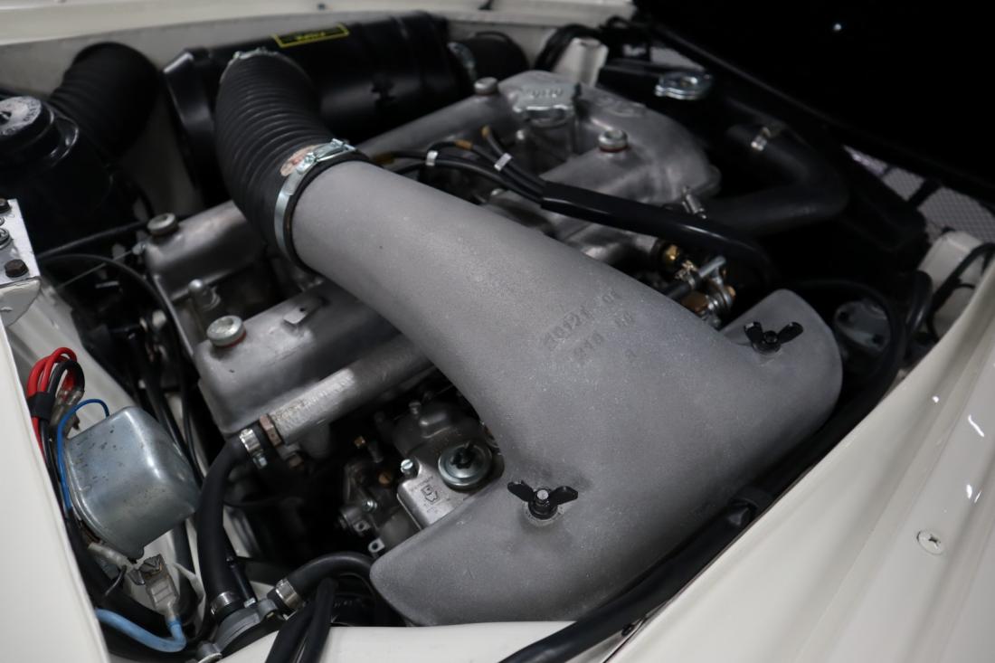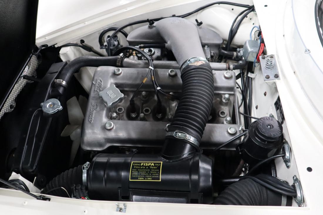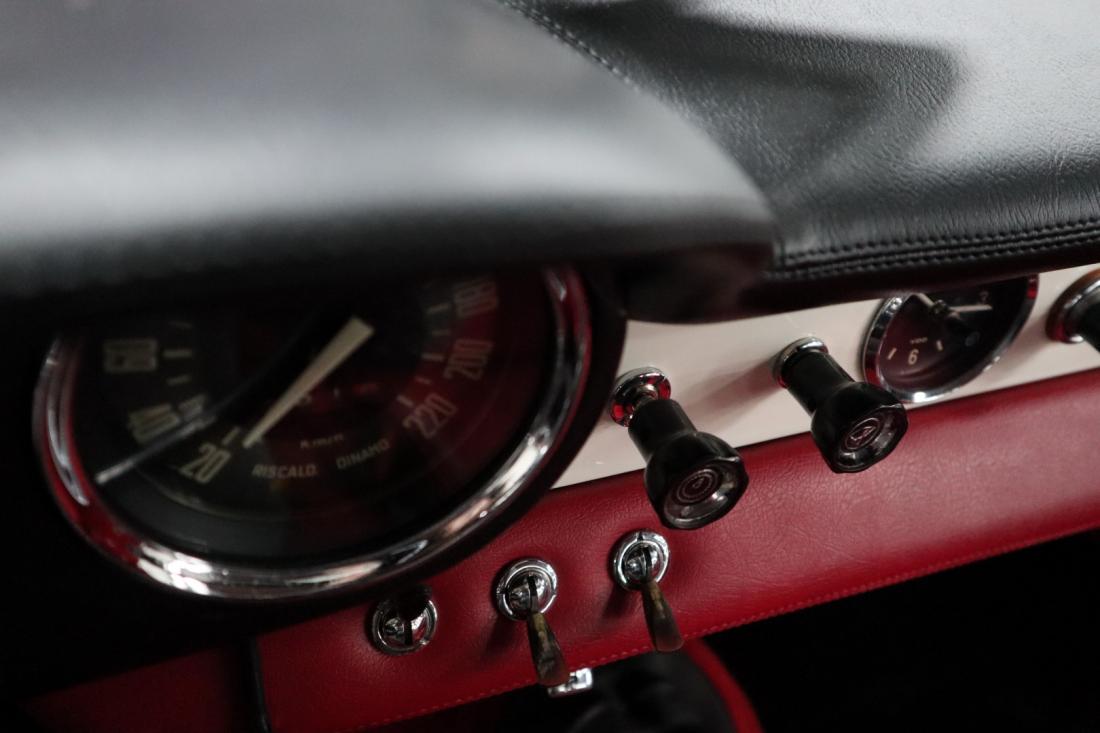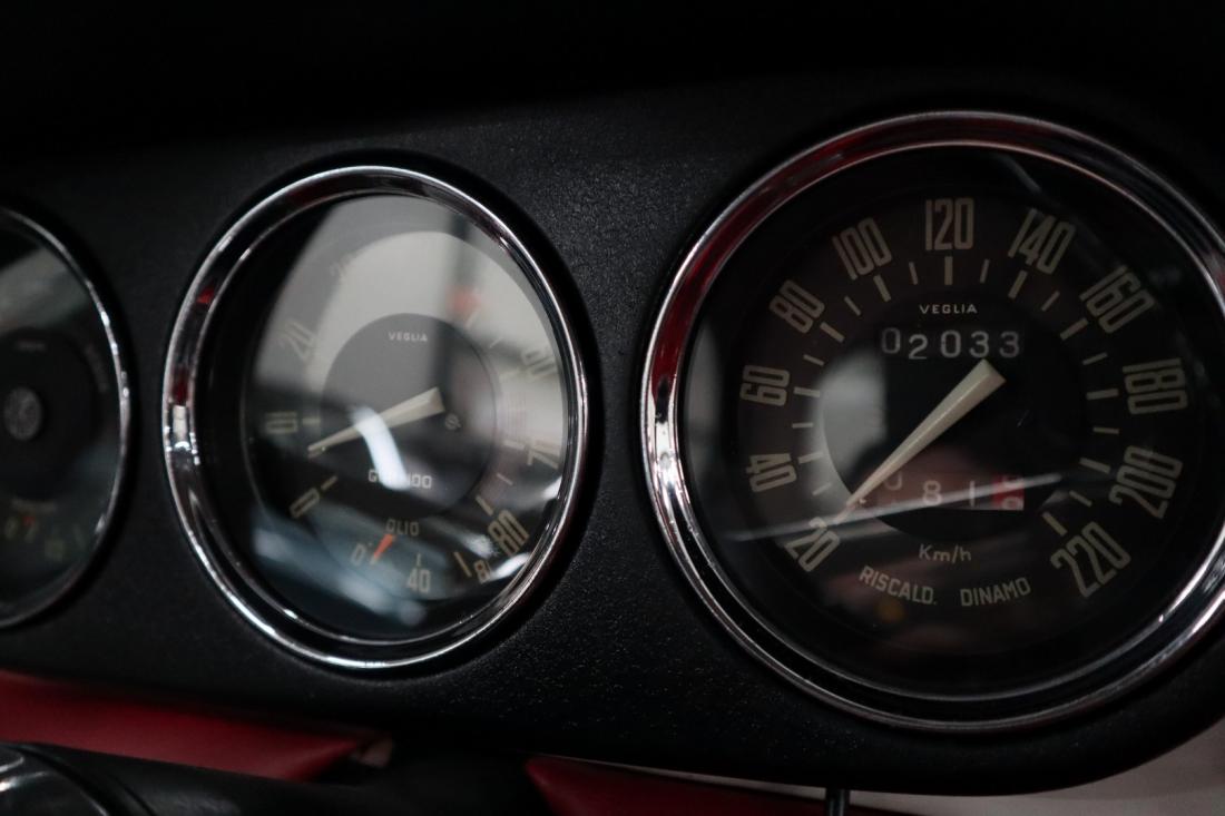 This Giulia Sprint Speciale is one of the last copies delivered and was registered in 1966. It is the 1600cc. version, which means that the 116 bhp 4-cylinder DOHC engine, connected to a wonderful smooth shifting five-speed gearbox, only has to move 860 kg. All this is done with such flexibility and ease of use that every kilometer is a true joy. The great enjoyment also continues when you see the beautiful interior, where every detail proves that the total restoration that this car has recently undergone, has been one of a high class. We personally kept an eye on this restoration and many photos testify to a thorough “bare metal” and professional approach. After it was fineshed, the car only made the test kilometers and we now have a great Giulia SS on display. And we are very happy about this, because an SS of this quality is very hard to find.