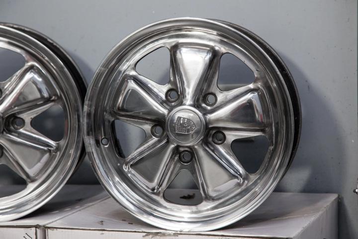 Complete set of four Fuchs Alloys from 1968-1973 Porsche 911 cars.The wheels are in excellent condition and ready to mount up for use.The wheels are true,cleaned and polished.6 x16