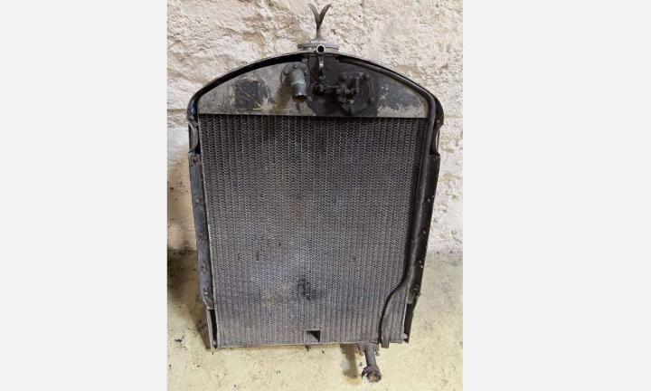 Radiator With Calastat And Mascot For Derby Bently 3.5 Litre Tested for leaks and holds water well with a good flow, one small/shallow dent that can be clearly seen on the photographs and some age related patina that should respond well to cleaning/restoration nice original flying B mascot with working steam valve, collection in person preferable but quote given is for postage by pallet to uk mainland, please ask for a quote if you require delivery elsewhere, please study the photographs carefully as they form a part of the description, feel free to get in touch for more information, measurements or photographs and check out our other listings for more great parts, tools and automobillia!