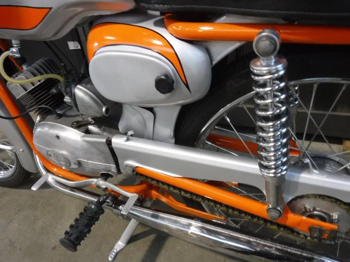 Uniek mooie gerestaureerde Malaguti Grand Sport van 1969. Loopt en rijdt perfect en komt met NL kenteken. Prachtig origineel doorlopend buddyseat. PRACHTIG! Echt Italiaans kunstwerk, dubbele uitlaat, echt super !! Grootste keus in ECHTE klassiekers met meer dan 450 stuks in de Stolze Collectie: van project tot perfect !