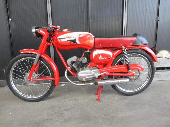Een perfect gerestaureerde, ZEER fraaie, geheel originele en goed lopende 1962 Moto Morini Corsarino. Een 50CC 4takt motor. Grote keus in motor- en bromfietsen in de Stolze Collectie!
