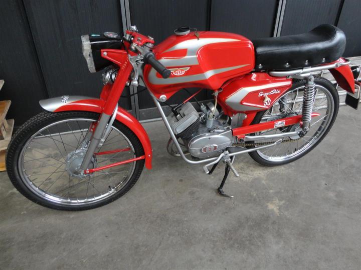 Zeer mooie gerestaureerde Testi Grand Prix 50CC uit 1960. Zeer bijzondere Italiaanse brommer met Nederlandse papieren. Grote keus in motor- en bromfietsen in de Stolze Collectie!