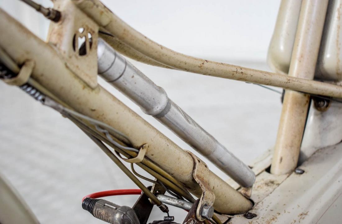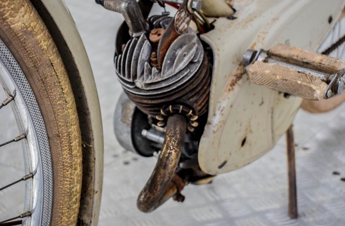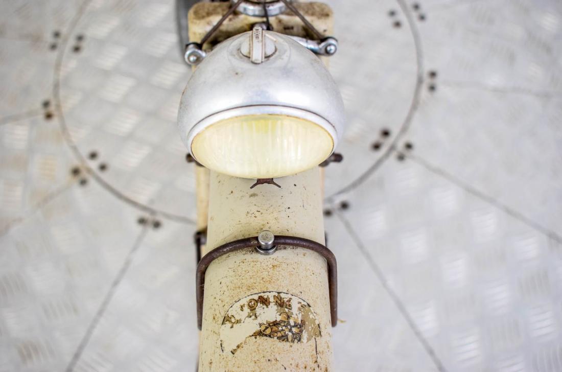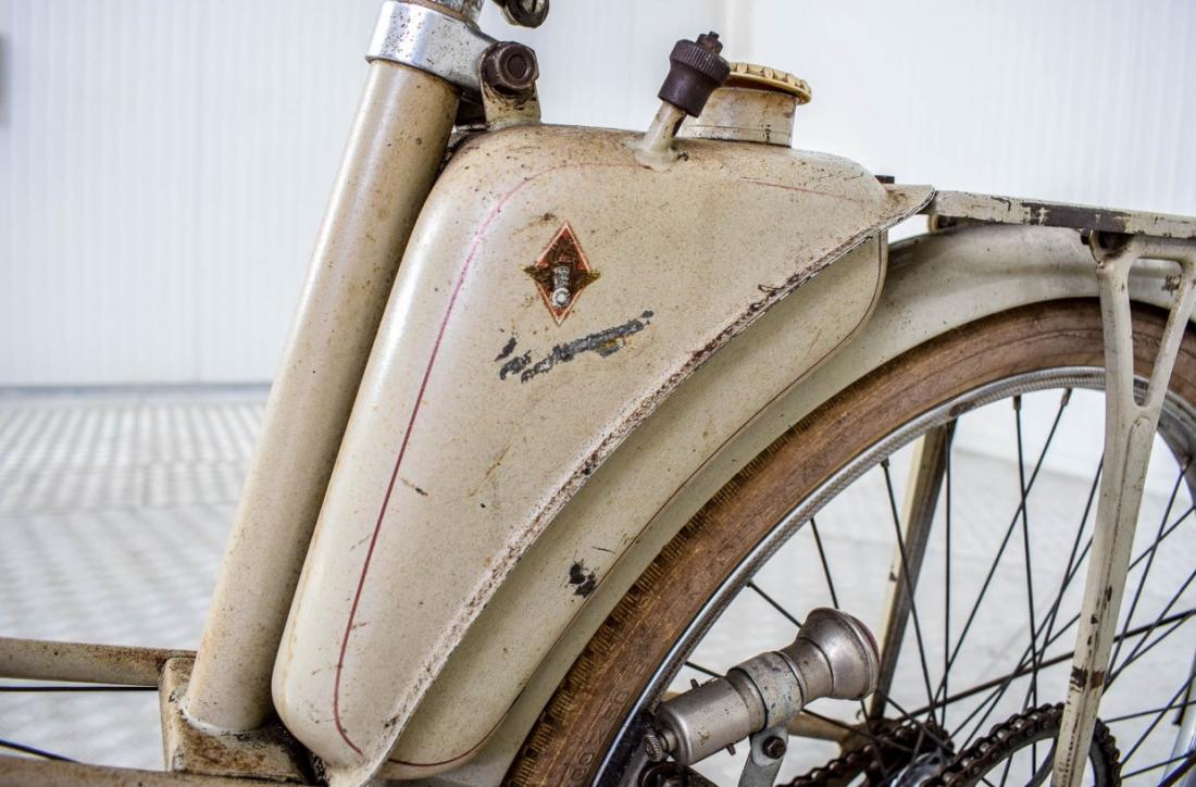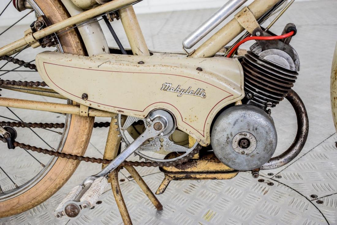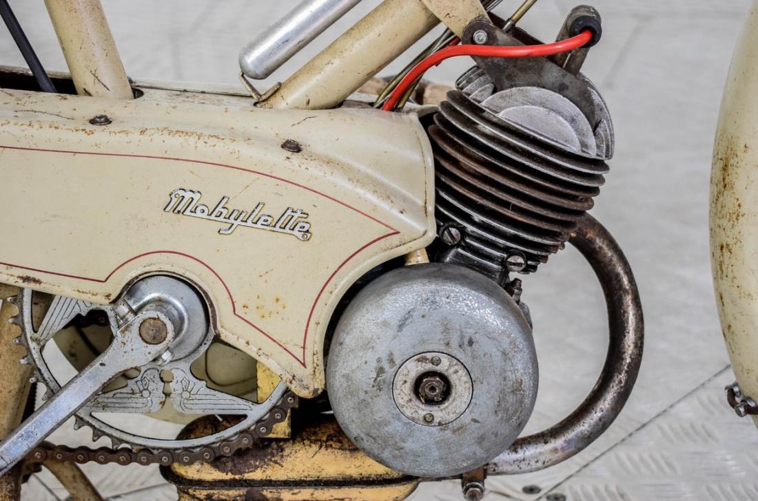 franse import, met echte patina look. Motobécane-fabriek, lanceerde zijn rijwiel met hulpmotor op de Utrechtse Najaarsbeurs van 1949, hetgeen een wereldprimeur was! De motorpers van die tijd beschreef de Mobylette als volgt: "Deze Kaptein heeft een motortje van 50 cc in een speciaal voor dit doel gemaakt frame. De tweetakt motor is in staat de fiets met een snelheid van 30 km/u voort te bewegen en dat het motortje dit zonder moeite doet blijkt wel uit het hierbij ontwikkeld lage toerental van 2800 toeren per minuut. Het brandstofverbruik bedraagt 1 liter op 70 á 80 km, met een mengverhouding van olie op benzine van 1 op 16, terwijl het tankje keurig tussen zadelframebuis en achterspatscherm weggewerkt is en twee liter brandstof kan bevatten. Het gewicht van het enkele frame is 18 kg en dat van het motortje 7 kg, wat overeenkomt met dat van zijn soortgenoten. Wat wij bij de motorfietsen de korte of primaire ketting noemen is hier uitgevoerd als een V-snaar die door een scherm aan het oog (en de broekspijp) onttrokken wordt. De secundaire overbrenging gebeurt door een ketting. Het gas wordt vanaf het stuur bediend door een draaibaar handle en mocht de motor onverhoopt tijdelijk de geest geven dan kan men de drie pennetjes aan de linkerzijde uittrekken en de motor staat vrij, zodat men zich trappend kan verplaatsen. In de koplamp zit nog een batterij verscholen die de lamp kan laten branden, die anders door de opgewekte stroom van de vliegwielmagneet gevoed wordt. Het motortje zelf was geen nieuwe constructie, maar in grote trekken een voortzetting van een type dat - met 60 cc cylinderinhoud en in combinatie met een losse tweeversnellingsbak - in de Poney, een licht motorfietsje, was gebruikt. Echter de motorkarakteristiek was danig gewijzigd. Het accent was nu gelegd op een grote trekkracht bij een laag toerental. Hoog vermogen was ingeruild voor trekkracht en een lange levensduur. Wat meteen opvalt bij het bekijken van de Mobylette - want zo wordt deze bromfiets toch altijd nog in de wandeling genoemd - is de practische en doelgerichte bouw. Een rijwielgedeelte met lage instap, ook geschikt dus voor dames, en het motortje gemonteerd voor de trapas, waardoor een laag zwaartepunt bereikt wordt en de kans op vervuiling van de kleding gering is. Het tankje is slim weggewerkt in een anders loze ruimte tussen zadelbuis en achterspatbord. Bedrijfsinformatie: Prijswijzigingen, druk- en zetfouten voorbehouden. Altijd ruim 500 auto's op voorraad, check de actuele voorraad via www.hofman.nl. Volg ons ook op facebook.com/HofmanLeek. Bel ons voor de mogelijkheden voor inkoop, verkoop, consignatieverkoop en stalling. * Veilig online kopen @ hofman.nl * Levering aan huis mogelijk *