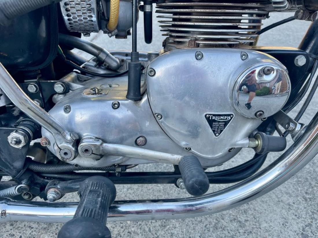 1971 Triumph Daytona 500 T 100 R DGM3187 VIN. EE23187. We bought this bike on Orcas Island and Andrew rode it back sightseeing on his way. 3 owner bike. From the seller his comments to us (The bike rides well and I used to use it to commute to work every day (when I didn't need a pickup to haul wood). The guy I bought it from on Lopez said a friend had it garaged since the 70s (he bought it from his friend late 90s) with 200 miles on it and that he bought it and put about 2000 on it (just on Lopez Island). I put the rest of the miles on since. I have had it for 6 years and have never had any issue with the way it runs. I had it garaged for the last 2 years because I was building my house, and when I added fuel this Spring, it started right up first kick and I rode it over to San Juan and spent 6 hours over there riding around and back. I have always drained the gas before storage and cleaned and retuned the carbs, plus change the oil every year.) Andrew had a great ride and says the Triumph ran and rode very well. It's a good looking bike. Has bar end mirrors. Ethanol free gas. The speedometer shows 6,923 miles and I believe that is probably actual miles but know way of proving it so selling as unknown miles. Recent new tires. Great for vintage riding.